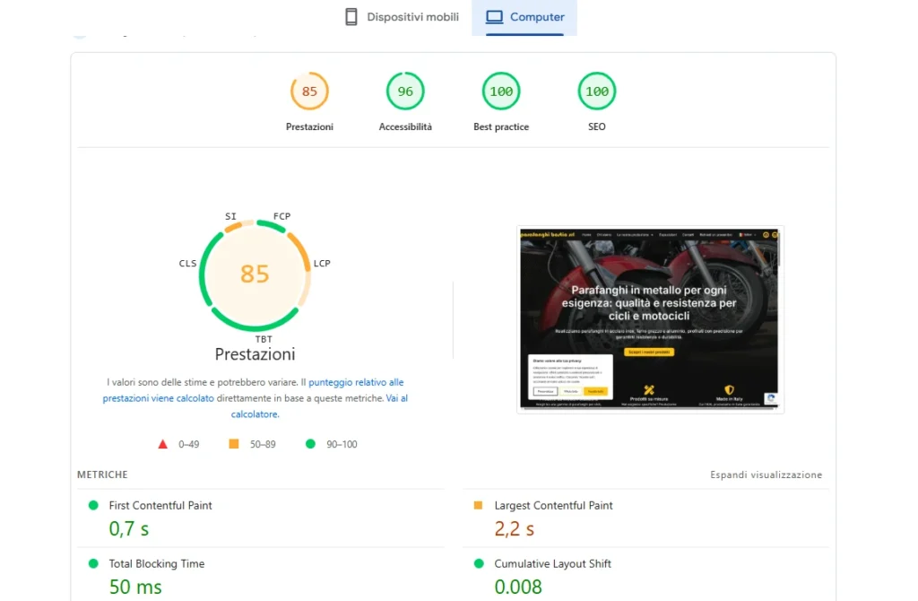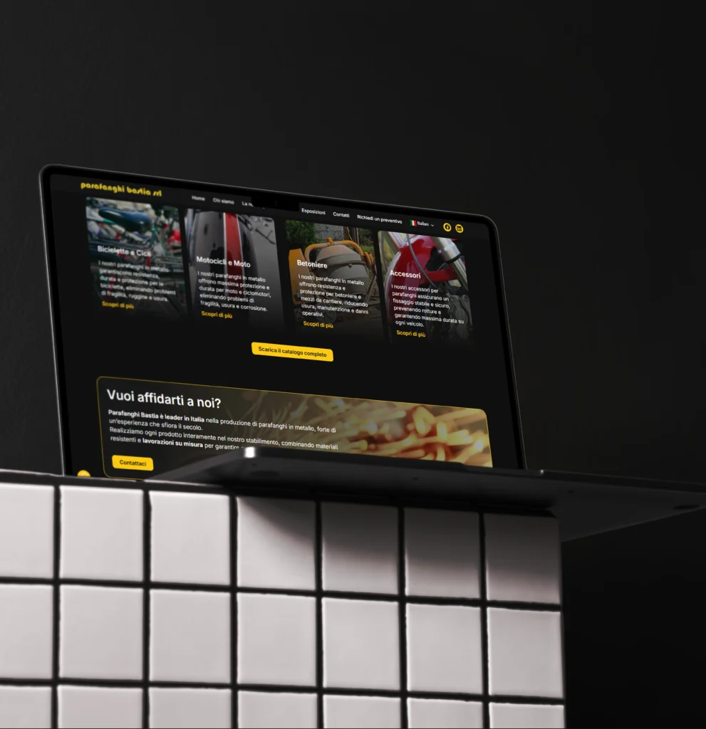 Parafanghi Bastia è un’azienda artigiana che da quasi un secolo produce parafanghi in metallo per cicli, motocicli, betoniere e relativi accessori, con materiali come acciaio inox, ferro grezzo, alluminio. Quando ci siamo messi al lavoro, il sito aveva bisogno di trasmettere non solo resistenza e tradizione, ma anche la capacità di adattarsi a misure su misura e a richieste specifiche. In collaborazione con la web designer Elena Slavazza, abbiamo costruito un sito che unisce la storia dell’azienda con una navigazione chiara, funzioni di preventivo ben visibili e immagini che mostrano la qualità vera delle lavorazioni.